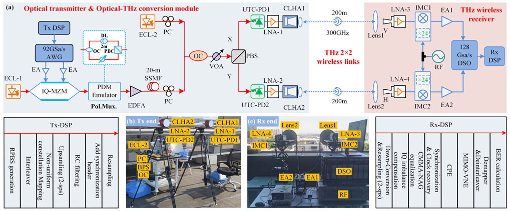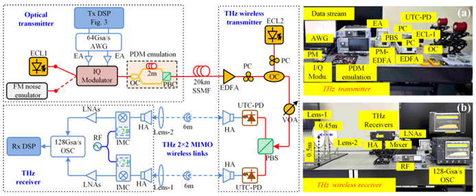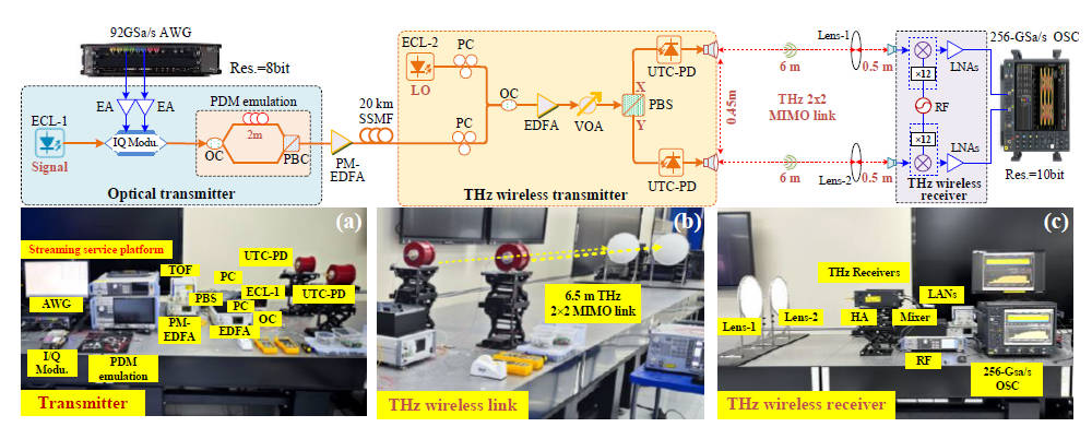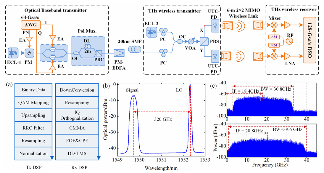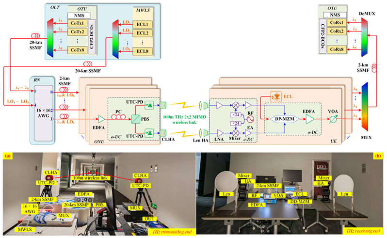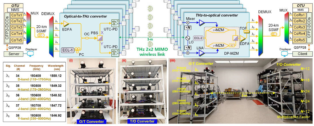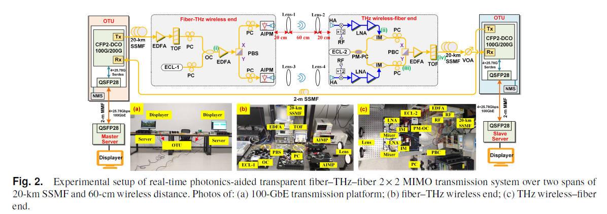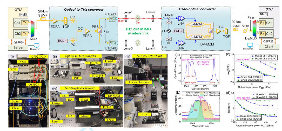 Real-time Dual-channel 2 × 2 MIMO Fiber-THz-Fiber Seamless Integration System at 385 GHz and 435 GHz
