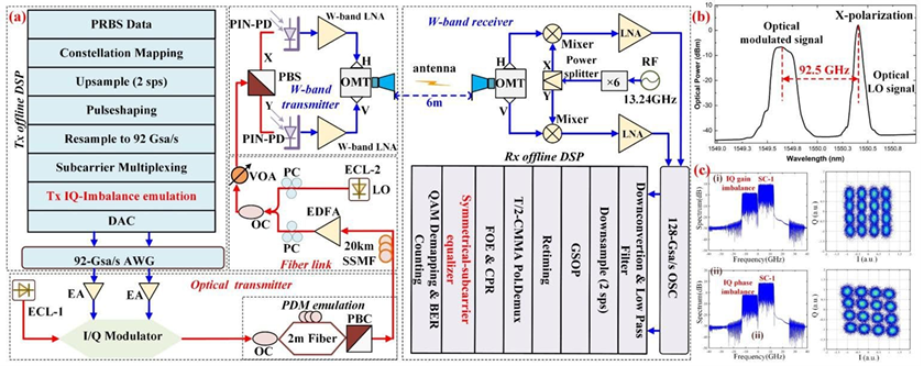 Experimental Comparison of Single-Carrier and Digital Subcarrier Multiplexing Transmissions in a W-Band 200 Gb/s Fiber-wireless System Considering Transmitter IQ Imbalance and Skew Mitigation