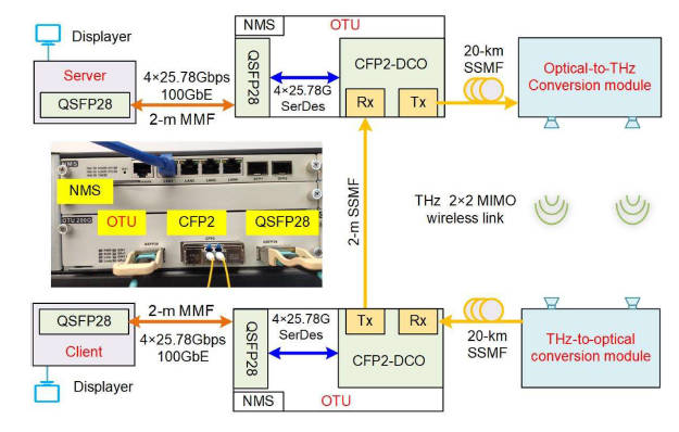 Real-time Demonstration of 100 GbE THz wireless and Fiber Seamless Integration Networks