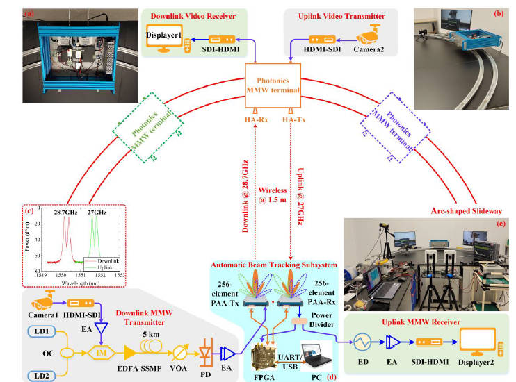 Real-Time Photonics-Aided MMW Mobile Communication Based on Integrated 256-Element Phased Array Antenna